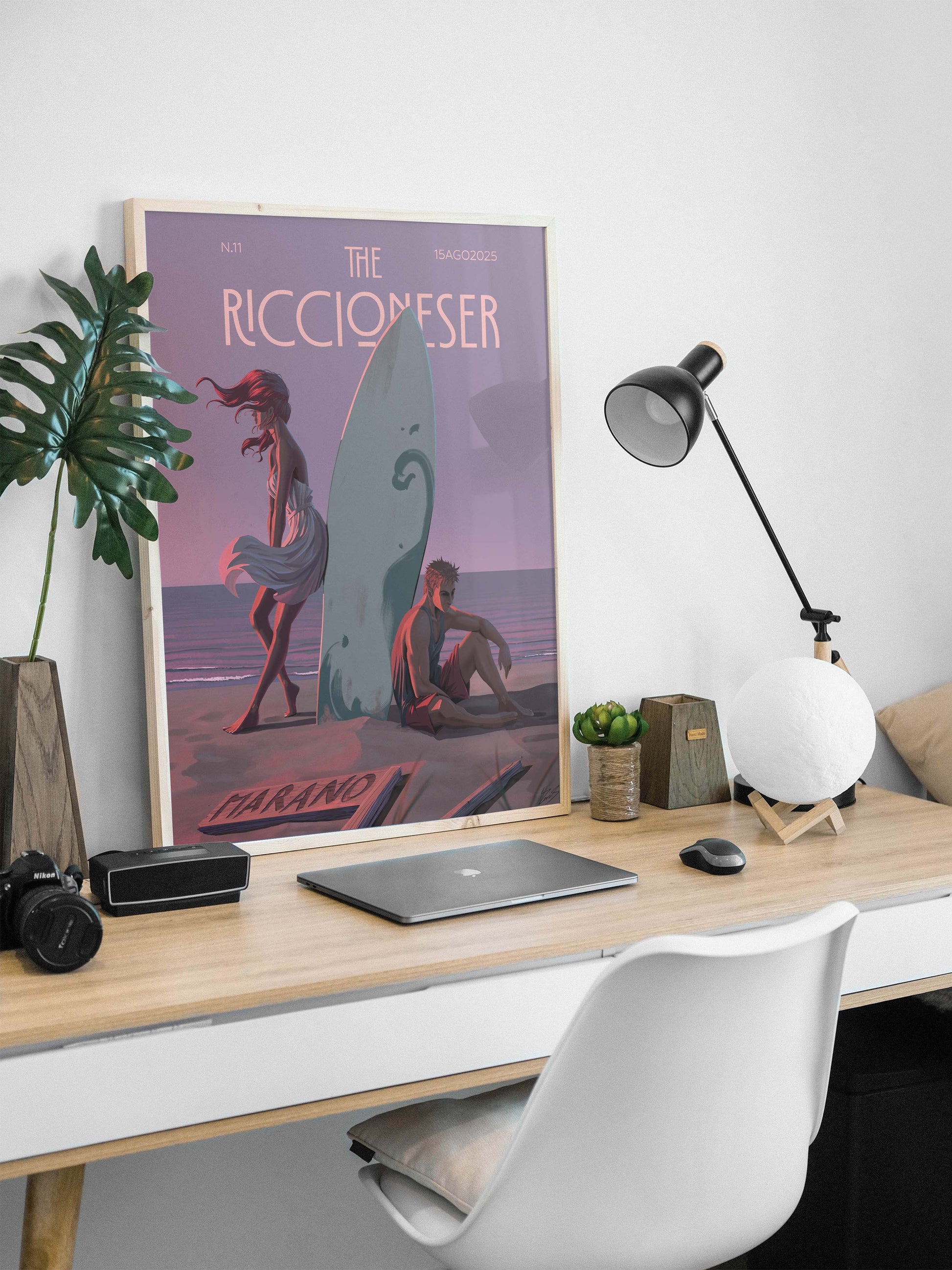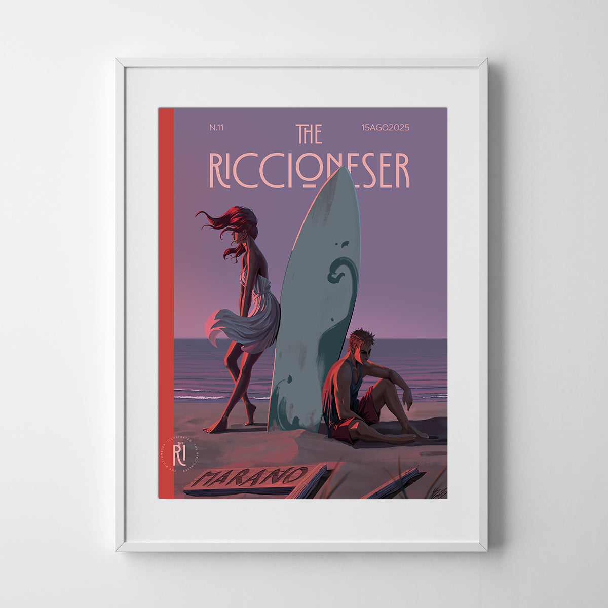 Nell’omaggio dell’artista una visione nostalgica di una delle grandi, iconiche feste rivierasche di fine estate, con la speranza di rivedere di nuovo i surfisti radunarsi al Marano